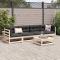 Salon de jardin 5 pcs avec coussins bois de pin massifCet ensemble de canapés de jardin est le complément parfait de votre arrière-cour, terrasse ou patio, offrant un espace confortable et accueillant pour discuter avec la famille et les amis ou simplement se détendre et profiter de l'extérieur. Matériau robuste et durable : le bois de pin massif est connu pour sa résistance et sa durabilité. Ses grains droits et ses noeuds distinctifs contribuent à son charme rustique. Expérience d'assise confortable : ce mobilier d'extérieur, doté de coussins épais, offre une expérience d'assise confortable. Bien ventilé et prévention de l'accumulation d'eau : la conception à lattes favorise une circulation optimale de l'air et empêche efficacement l'accumulation d'eau, assurant ainsi une assise sèche et confortable. Conception modulaire : cet ensemble de meubles d'extérieur a une conception modulaire, ce qui le rend complètement flexible et facile à déplacer, afin que vous puissiez créer un agencement de meubles d'extérieur personnalisé. Bon à savoir :Pour que vos meubles d'extérieur restent beaux, nous vous recommandons de les protéger avec une housse imperméable. Maximum 110 kg par siège. Soyez conscient du risque de feu ouvert et d'autres sources de forte chaleur à proximité de l'appareil.