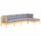 Salon de jardin 5 pcs avec coussins gris bois de pinCet ensemble de salon de jardin en bois est un choix excellent pour vous détendre et profiter du bon temps, faire une sieste ou discuter avec votre famille ou vos amis. Le salon de patio est fabriqué en bois de pin massif, ce qui le rend robuste et stable. Les coussins ajoutent un confort supplémentaire. Vous pouvez le combiner avec d'autres segments modulaires pour créer vos propres configurations de salon de jardin ! Remarque : afin de prolonger la durée de vie des meubles d'extérieur, nous vous recommandons de les protéger avec une housse imperméable. Maximum 110 kg par siège.