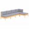 Salon de jardin 5 pcs avec coussins gris bois de pinCet ensemble de salon de jardin en bois est un choix excellent pour vous détendre et profiter du bon temps, faire une sieste ou discuter avec votre famille ou vos amis. Le salon de patio est fabriqué en bois de pin massif, ce qui le rend robuste et stable. Les coussins ajoutent un confort supplémentaire. Vous pouvez le combiner avec d'autres segments modulaires pour créer vos propres configurations de salon de jardin ! Remarque : afin de prolonger la durée de vie des meubles d'extérieur, nous vous recommandons de les protéger avec une housse imperméable. Maximum 110 kg par siège.