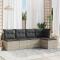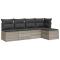Salon de jardin 5 pcs avec coussins gris clair résine tresséeCet ensemble de canapés de jardin est le complément parfait de votre arrière-cour, terrasse ou patio, offrant un espace confortable et accueillant pour discuter avec la famille et les amis ou simplement se détendre et profiter de l'extérieur. Matériau durable : la résine tressée, également connue sous le nom de poly rotin, est un matériau synthétique solide et nécessitant peu d'entretien qui ressemble au rotin naturel. Il est léger, facile à nettoyer et couramment utilisé pour les meubles d'extérieur en raison de sa durabilité et de ses propriétés de résistance aux intempéries.Fonction de rangement avec sac résistant à l'eau : chaque siège de jardin dispose d'un espace de rangement sous l'assise, complété par un sac résistant à l'eau pour ranger les coussins, les jouets et d'autres objets. Les sacs intérieurs sont dotés d'un couvercle et peuvent être solidement fixés aux sièges à l'aide de bandes auto-agrippantes pour plus de stabilité.Housse amovible et lavable : ces coussins de siège sont dotés de housses amovibles pour un lavage et un entretien faciles.Conception modulaire : cet ensemble de meubles d'extérieur a une conception modulaire, ce qui le rend complètement flexible et facile à déplacer, afin que vous puissiez créer un agencement de meubles d'extérieur personnalisé. Bon à savoir :Pour que vos meubles d'extérieur restent beaux, nous vous recommandons de les protéger avec une housse imperméable.