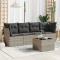 Salon de jardin 5 pcs avec coussins gris clair résine tresséeCet ensemble de canapés de jardin est le complément parfait de votre arrière-cour, terrasse ou patio, offrant un espace confortable et accueillant pour discuter avec la famille et les amis ou simplement se détendre et profiter de l'extérieur. Matériau durable : la résine tressée, également connue sous le nom de poly rotin, est un matériau synthétique solide et nécessitant peu d'entretien qui ressemble au rotin naturel. Il est léger, facile à nettoyer et couramment utilisé pour les meubles d'extérieur en raison de sa durabilité et de ses propriétés de résistance aux intempéries.Expérience d'assise confortable : cet ensemble de meubles d'extérieur, doté de coussins épais, offre une expérience d'assise confortable.Housse amovible et lavable : ces coussins de siège sont dotés de housses amovibles pour un lavage et un entretien faciles.Dessus en verre : le dessus de la table d'extérieur est fabriqué en verre trempé solide et durable, ce qui le rend facile à nettoyer avec un chiffon humide et ajoute une touche d'élégance à votre espace extérieur.Conception modulaire : cet ensemble de meubles d'extérieur a une conception modulaire, ce qui le rend complètement flexible et facile à déplacer, afin que vous puissiez créer un agencement de meubles d'extérieur personnalisé. Bon à savoir :Pour que vos meubles d'extérieur restent beaux, nous vous recommandons de les protéger avec une housse imperméable.