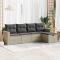Salon de jardin 5 pcs avec coussins gris clair résine tresséeCet ensemble de canapés de jardin est le complément parfait de votre arrière-cour, terrasse ou patio, offrant un espace confortable et accueillant pour discuter avec la famille et les amis ou simplement se détendre et profiter de l'extérieur. Matériau durable : la résine tressée, également connue sous le nom de poly rotin, est un matériau synthétique solide et nécessitant peu d'entretien qui ressemble au rotin naturel. Elle est légère, facile à nettoyer et couramment utilisée pour les meubles d'extérieur en raison de sa durabilité et de ses propriétés de résistance aux intempéries.Fonction de rangement avec sac résistant à l'eau : le mobilier de jardin dispose d'un espace de rangement sous l'assise, complété par un sac résistant à l'eau pour ranger coussins, jouets et autres objets. Le sac intérieur peut être solidement fixé au mobilier d'extérieur grâce à des attaches auto-agrippantes pour plus de stabilité.Pouf polyvalent : le tabouret est polyvalent, servant de repose-pieds confortable lorsque vous vous prélassez sur le canapé ou de siège supplémentaire dans votre jardin.Housse amovible et lavable : ces coussins de siège sont dotés de housses amovibles pour un lavage et un entretien faciles.Conception modulaire : cet ensemble de meubles d'extérieur a une conception modulaire, ce qui le rend complètement flexible et facile à déplacer, afin que vous puissiez créer un agencement de meubles d'extérieur personnalisé. Bon à savoir :Pour que vos meubles d'extérieur restent beaux, nous vous recommandons de les protéger avec une housse imperméable.