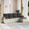 Salon de jardin 5 pcs avec coussins gris clair résine tresséeCet ensemble de canapés de jardin est le complément parfait de votre arrière-cour, terrasse ou patio, offrant un espace confortable et accueillant pour discuter avec la famille et les amis ou simplement se détendre et profiter de l'extérieur. Matériau durable : la résine tressée, également connue sous le nom de poly rotin, est un matériau synthétique solide et nécessitant peu d'entretien qui ressemble au rotin naturel. Il est léger, facile à nettoyer et couramment utilisé pour les meubles d'extérieur en raison de sa durabilité et de ses propriétés de résistance aux intempéries.Expérience d'assise confortable : ce mobilier d'extérieur, doté de coussins épais, offre une expérience d'assise confortable.Housse amovible et lavable : ces coussins de siège sont dotés de housses amovibles pour un lavage et un entretien faciles.Cadre robuste et stable : le cadre en acier enduit de poudre assure la solidité et la stabilité du meuble de jardin pour une utilisation quotidienne à l'extérieur.Conception modulaire : cet ensemble de meubles d'extérieur a une conception modulaire, ce qui le rend complètement flexible et facile à déplacer, afin que vous puissiez créer un agencement de meubles d'extérieur personnalisé. Bon à savoir :Pour que vos meubles d'extérieur restent beaux, nous vous recommandons de les protéger avec une housse imperméable.
