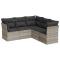 Salon de jardin 5 pcs avec coussins gris clair résine tresséeCet ensemble de canapés de jardin est le complément parfait de votre arrière-cour, terrasse ou patio, offrant un espace confortable et accueillant pour discuter avec la famille et les amis ou simplement se détendre et profiter de l'extérieur. Matériau durable : la résine tressée, également connue sous le nom de poly rotin, est un matériau synthétique solide et nécessitant peu d'entretien qui ressemble au rotin naturel. Il est léger, facile à nettoyer et couramment utilisé pour les meubles d'extérieur en raison de sa durabilité et de ses propriétés de résistance aux intempéries.Expérience d'assise confortable : cet ensemble de meubles d'extérieur, doté de coussins épais, offre une expérience d'assise confortable.Housse amovible et lavable : ces coussins de siège sont dotés de housses amovibles pour un lavage et un entretien faciles.Conception modulaire : cet ensemble de meubles d'extérieur a une conception modulaire, ce qui le rend complètement flexible et facile à déplacer, afin que vous puissiez créer un agencement de meubles d'extérieur personnalisé. Bon à savoir :Pour que vos meubles d'extérieur restent beaux, nous vous recommandons de les protéger avec une housse imperméable.