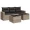 Salon de jardin 5 pcs avec coussins gris clair résine tresséeCet ensemble de canapés de jardin est le complément parfait de votre arrière-cour, terrasse ou patio, offrant un espace confortable et accueillant pour discuter avec la famille et les amis ou simplement se détendre et profiter de l'extérieur. Matériau durable : la résine tressée, également connue sous le nom de poly rotin, est un matériau synthétique solide et nécessitant peu d'entretien qui ressemble au rotin naturel. Il est léger, facile à nettoyer et couramment utilisé pour les meubles d'extérieur en raison de sa durabilité et de ses propriétés de résistance aux intempéries. Fonction de rangement avec sac résistant à l'eau : chaque siège de jardin dispose d'un espace de rangement sous l'assise, complété par un sac résistant à l'eau pour ranger les coussins, les jouets et d'autres objets. Les sacs intérieurs sont dotés d'un couvercle et peuvent être solidement fixés aux sièges à l'aide de bandes auto-agrippantes pour plus de stabilité. Dessus en verre : le dessus de la table d'extérieur est fabriqué en verre trempé solide et durable, ce qui le rend facile à nettoyer avec un chiffon humide et ajoute une touche d'élégance à votre espace extérieur. Housse amovible et lavable : ces coussins de siège sont dotés de housses amovibles pour un lavage et un entretien faciles. Conception modulaire : cet ensemble de meubles d'extérieur a une conception modulaire, ce qui le rend complètement flexible et facile à déplacer, afin que vous puissiez créer un agencement de meubles d'extérieur personnalisé. Bon à savoir : Pour que vos meubles d'extérieur restent beaux, nous vous recommandons de les protéger avec une housse imperméable. ,