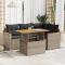 Salon de jardin 5 pcs avec coussins gris résine tressée acaciaCet ensemble de canapés de jardin est le complément parfait de votre arrière-cour, terrasse ou patio, offrant un espace confortable et accueillant pour discuter avec la famille et les amis ou simplement se détendre et profiter de l'extérieur.Matériau durable : la résine tressée, également connue sous le nom de poly rotin, est un matériau synthétique solide et nécessitant peu d'entretien qui ressemble au rotin naturel. Elle est légère, facile à nettoyer et couramment utilisée pour les meubles d'extérieur en raison de sa durabilité et de ses propriétés de résistance aux intempéries.Fonction de rangement avec sac résistant à l'eau : chaque siège de jardin dispose d'un espace de rangement sous l'assise, complété par un sac résistant à l'eau pour ranger les coussins, les jouets et d'autres objets. Les sacs intérieurs sont dotés d'un couvercle et peuvent être solidement fixés aux sièges à l'aide de bandes auto-agrippantes pour plus de stabilité.Housse amovible et lavable : ces coussins de siège sont dotés de housses amovibles pour un lavage et un entretien faciles.Conception modulaire : cet ensemble de meubles d'extérieur a une conception modulaire, ce qui le rend complètement flexible et facile à déplacer, afin que vous puissiez créer un agencement de meubles d'extérieur personnalisé.Bon à savoir :Pour que vos meubles d'extérieur restent beaux, nous vous recommandons de les protéger avec une housse imperméable.
