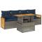 Salon de jardin 5 pcs avec coussins gris résine tressée acaciaCet ensemble de canapés de jardin est le complément parfait de votre arrière-cour, terrasse ou patio, offrant un espace confortable et accueillant pour discuter avec la famille et les amis ou simplement se détendre et profiter de l'extérieur. Matériau durable : la résine tressée, également connue sous le nom de poly rotin, est un matériau synthétique solide et nécessitant peu d'entretien qui ressemble au rotin naturel. Elle est légère, facile à nettoyer et couramment utilisée pour les meubles d'extérieur en raison de sa durabilité et de ses propriétés de résistance aux intempéries. Fonction de rangement avec sac résistant à l'eau : chaque siège de jardin dispose d'un espace de rangement sous l'assise, complété par un sac résistant à l'eau pour ranger les coussins, les jouets et d'autres objets. Les sacs intérieurs sont dotés d'un couvercle et peuvent être solidement fixés aux sièges à l'aide de bandes auto-agrippantes pour plus de stabilité. Housse amovible et lavable : ces coussins de siège sont dotés de housses amovibles pour un lavage et un entretien faciles. Conception modulaire : cet ensemble de meubles d'extérieur a une conception modulaire, ce qui le rend complètement flexible et facile à déplacer, afin que vous puissiez créer un agencement de meubles d'extérieur personnalisé. Bon à savoir : Pour que vos meubles d'extérieur restent beaux, nous vous recommandons de les protéger avec une housse imperméable.