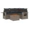 Salon de jardin 5 pcs avec coussins gris résine tresséeCet ensemble de canapés de jardin est le complément parfait de votre arrière-cour, terrasse ou patio, offrant un espace confortable et accueillant pour discuter avec la famille et les amis ou simplement se détendre et profiter de l'extérieur. Matériau durable : la résine tressée, également connue sous le nom de poly rotin, est un matériau synthétique solide et nécessitant peu d'entretien qui ressemble au rotin naturel. Il est léger, facile à nettoyer et couramment utilisé pour les meubles d'extérieur en raison de sa durabilité et de ses propriétés de résistance aux intempéries.Fonction de rangement avec sac résistant à l'eau : chaque siège de jardin dispose d'un espace de rangement sous l'assise, complété par un sac résistant à l'eau pour ranger les coussins, les jouets et d'autres objets. Les sacs intérieurs sont dotés d'un couvercle et peuvent être solidement fixés aux sièges à l'aide de bandes auto-agrippantes pour plus de stabilité.Dessus stable et facile à nettoyer : cette table de jardin a un dessus en bois d'acacia robuste, durable et facile à nettoyer avec un chiffon humide.Table d'appoint pratique : ce mobilier d'extérieur comprend des tables d'appoint pliables avec un ressort à gaz sur les accoudoirs, offrant des endroits pratiques pour garder vos essentiels à portée de main.Conception modulaire : cet ensemble de meubles d'extérieur a une conception modulaire, ce qui le rend complètement flexible et facile à déplacer, afin que vous puissiez créer un agencement de meubles d'extérieur personnalisé. Bon à savoir :Pour que vos meubles d'extérieur restent beaux, nous vous recommandons de les protéger avec une housse imperméable.