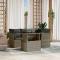Salon de jardin 5 pcs avec coussins gris résine tresséeCet ensemble de canapés de jardin est le complément parfait de votre arrière-cour, terrasse ou patio, offrant un espace confortable et accueillant pour discuter avec la famille et les amis ou simplement se détendre et profiter de l'extérieur. Matériau durable : la résine tressée, également connue sous le nom de poly rotin, est un matériau synthétique solide et nécessitant peu d'entretien qui ressemble au rotin naturel. Il est léger, facile à nettoyer et couramment utilisé pour les meubles d'extérieur en raison de sa durabilité et de ses propriétés de résistance aux intempéries.Dessus de table réglable : le dessus de table peut être soulevé pour rendre la table plus haute, ce qui transforme la table d'extérieur d'une table basse à une table de salle à manger. Elle est parfaite pour recevoir des invités ou prendre des repas à l'extérieur.Expérience d'assise confortable : ce mobilier d'extérieur, doté de coussins épais, offre une expérience d'assise confortable.Housse amovible et lavable : ces coussins de siège sont dotés de housses amovibles pour un lavage et un entretien faciles.Conception modulaire : cet ensemble de meubles d'extérieur a une conception modulaire, ce qui le rend complètement flexible et facile à déplacer, afin que vous puissiez créer un agencement de meubles d'extérieur personnalisé. Bon à savoir :Pour que vos meubles d'extérieur restent beaux, nous vous recommandons de les protéger avec une housse imperméable.