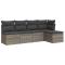 Salon de jardin 5 pcs avec coussins gris résine tresséeCet ensemble de canapés de jardin est le complément parfait de votre arrière-cour, terrasse ou patio, offrant un espace confortable et accueillant pour discuter avec la famille et les amis ou simplement se détendre et profiter de l'extérieur. Matériau durable : la résine tressée, également connue sous le nom de poly rotin, est un matériau synthétique solide et nécessitant peu d'entretien qui ressemble au rotin naturel. Il est léger, facile à nettoyer et couramment utilisé pour les meubles d'extérieur en raison de sa durabilité et de ses propriétés de résistance aux intempéries.Fonction de rangement avec sac résistant à l'eau : chaque siège de jardin dispose d'un espace de rangement sous l'assise, complété par un sac résistant à l'eau pour ranger les coussins, les jouets et d'autres objets. Les sacs intérieurs sont dotés d'un couvercle et peuvent être solidement fixés aux sièges à l'aide de bandes auto-agrippantes pour plus de stabilité.Housse amovible et lavable : ces coussins de siège sont dotés de housses amovibles pour un lavage et un entretien faciles.Conception modulaire : cet ensemble de meubles d'extérieur a une conception modulaire, ce qui le rend complètement flexible et facile à déplacer, afin que vous puissiez créer un agencement de meubles d'extérieur personnalisé. Bon à savoir :Pour que vos meubles d'extérieur restent beaux, nous vous recommandons de les protéger avec une housse imperméable.