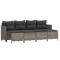 Salon de jardin 5 pcs avec coussins gris résine tresséeCet ensemble de canapés de jardin est le complément parfait de votre arrière-cour, terrasse ou patio, offrant un espace confortable et accueillant pour discuter avec la famille et les amis ou simplement se détendre et profiter de l'extérieur. Matériau durable : la résine tressée, également connue sous le nom de poly rotin, est un matériau synthétique solide et nécessitant peu d'entretien qui ressemble au rotin naturel. Il est léger, facile à nettoyer et couramment utilisé pour les meubles d'extérieur en raison de sa durabilité et de ses propriétés de résistance aux intempéries.Expérience d'assise confortable : ce mobilier d'extérieur, doté de coussins épais, offre une expérience d'assise confortable.Pouf polyvalent : le tabouret est polyvalent, servant de repose-pieds confortable lorsque vous vous prélassez sur le canapé ou de siège supplémentaire dans votre jardin.Housse amovible et lavable : ces coussins de siège sont dotés de housses amovibles pour un lavage et un entretien faciles.Cadre robuste et stable : le cadre en acier enduit de poudre assure la solidité et la stabilité du meuble de jardin pour une utilisation quotidienne à l'extérieur. Bon à savoir :Pour que vos meubles d'extérieur restent beaux, nous vous recommandons de les protéger avec une housse imperméable.