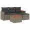 Salon de jardin 5 pcs avec coussins gris résine tresséeCet ensemble de canapés de jardin est le complément parfait de votre arrière-cour, terrasse ou patio, offrant un espace confortable et accueillant pour discuter avec la famille et les amis ou simplement se détendre et profiter de l'extérieur. Matériau durable : la résine tressée, également connue sous le nom de poly rotin, est un matériau synthétique solide et nécessitant peu d'entretien qui ressemble au rotin naturel. Il est léger, facile à nettoyer et couramment utilisé pour les meubles d'extérieur en raison de sa durabilité et de ses propriétés de résistance aux intempéries.Fonction de rangement avec sac résistant à l'eau : le mobilier de jardin dispose d'un espace de rangement sous l'assise, complété par un sac résistant à l'eau pour ranger coussins, jouets et autres objets. Le sac intérieur peut être solidement fixé au mobilier d'extérieur grâce à des attaches auto-agrippantes pour plus de stabilité.Dessus stable et facile à nettoyer : cette table de jardin a un dessus en bois d'acacia robuste, durable et facile à nettoyer avec un chiffon humide.Housse amovible et lavable : ces coussins de siège sont dotés de housses amovibles pour un lavage et un entretien faciles.Conception modulaire : cet ensemble de meubles d'extérieur a une conception modulaire, ce qui le rend complètement flexible et facile à déplacer, afin que vous puissiez créer un agencement de meubles d'extérieur personnalisé. Bon à savoir :Pour que vos meubles d'extérieur restent beaux, nous vous recommandons de les protéger avec une housse imperméable.
