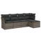 Salon de jardin 5 pcs avec coussins gris résine tresséeCet ensemble de canapés de jardin est le complément parfait de votre arrière-cour, terrasse ou patio, offrant un espace confortable et accueillant pour discuter avec la famille et les amis ou simplement se détendre et profiter de l'extérieur. Matériau durable : la résine tressée, également connue sous le nom de poly rotin, est un matériau synthétique solide et nécessitant peu d'entretien qui ressemble au rotin naturel. Il est léger, facile à nettoyer et couramment utilisé pour les meubles d'extérieur en raison de sa durabilité et de ses propriétés de résistance aux intempéries.Expérience d'assise confortable : ce mobilier d'extérieur, doté de coussins épais, offre une expérience d'assise confortable.Housse amovible et lavable : ces coussins de siège sont dotés de housses amovibles pour un lavage et un entretien faciles.Cadre robuste et stable : le cadre en acier enduit de poudre assure la solidité et la stabilité du meuble de jardin pour une utilisation quotidienne à l'extérieur.Conception modulaire : cet ensemble de meubles d'extérieur a une conception modulaire, ce qui le rend complètement flexible et facile à déplacer, afin que vous puissiez créer un agencement de meubles d'extérieur personnalisé. Bon à savoir :Pour que vos meubles d'extérieur restent beaux, nous vous recommandons de les protéger avec une housse imperméable.
