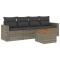 Salon de jardin 5 pcs avec coussins gris résine tresséeCet ensemble de canapés de jardin est le complément parfait de votre arrière-cour, terrasse ou patio, offrant un espace confortable et accueillant pour discuter avec la famille et les amis ou simplement se détendre et profiter de l'extérieur. Matériau durable : la résine tressée, également connue sous le nom de poly rotin, est un matériau synthétique solide et nécessitant peu d'entretien qui ressemble au rotin naturel. Il est léger, facile à nettoyer et couramment utilisé pour les meubles d'extérieur en raison de sa durabilité et de ses propriétés de résistance aux intempéries.Expérience d'assise confortable : ce mobilier d'extérieur, doté de coussins épais, offre une expérience d'assise confortable.Dessus stable et facile à nettoyer : cette table de jardin a un dessus en bois d'acacia robuste, durable et facile à nettoyer avec un chiffon humide.Housse amovible et lavable : ces coussins de siège sont dotés de housses amovibles pour un lavage et un entretien faciles.Conception modulaire : cet ensemble de meubles d'extérieur a une conception modulaire, ce qui le rend complètement flexible et facile à déplacer, afin que vous puissiez créer un agencement de meubles d'extérieur personnalisé. Bon à savoir :Pour que vos meubles d'extérieur restent beaux, nous vous recommandons de les protéger avec une housse imperméable.