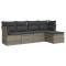 Salon de jardin 5 pcs avec coussins gris résine tresséeCet ensemble de canapés de jardin est le complément parfait de votre arrière-cour, terrasse ou patio, offrant un espace confortable et accueillant pour discuter avec la famille et les amis ou simplement se détendre et profiter de l'extérieur. Matériau durable : la résine tressée, également connue sous le nom de poly rotin, est un matériau synthétique solide et nécessitant peu d'entretien qui ressemble au rotin naturel. Il est léger, facile à nettoyer et couramment utilisé pour les meubles d'extérieur en raison de sa durabilité et de ses propriétés de résistance aux intempéries.Fonction de rangement avec sac résistant à l'eau : chaque siège de jardin dispose d'un espace de rangement sous l'assise, complété par un sac résistant à l'eau pour ranger les coussins, les jouets et d'autres objets. Les sacs intérieurs sont dotés d'un couvercle et peuvent être solidement fixés aux sièges à l'aide de bandes auto-agrippantes pour plus de stabilité.Housse amovible et lavable : ces coussins de siège sont dotés de housses amovibles pour un lavage et un entretien faciles.Conception modulaire : cet ensemble de meubles d'extérieur a une conception modulaire, ce qui le rend complètement flexible et facile à déplacer, afin que vous puissiez créer un agencement de meubles d'extérieur personnalisé. Bon à savoir :Pour que vos meubles d'extérieur restent beaux, nous vous recommandons de les protéger avec une housse imperméable.
