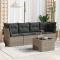 Salon de jardin 5 pcs avec coussins gris résine tresséeCet ensemble de canapés de jardin est le complément parfait de votre arrière-cour, terrasse ou patio, offrant un espace confortable et accueillant pour discuter avec la famille et les amis ou simplement se détendre et profiter de l'extérieur. Matériau durable : la résine tressée, également connue sous le nom de poly rotin, est un matériau synthétique solide et nécessitant peu d'entretien qui ressemble au rotin naturel. Il est léger, facile à nettoyer et couramment utilisé pour les meubles d'extérieur en raison de sa durabilité et de ses propriétés de résistance aux intempéries.Fonction de rangement avec sac résistant à l'eau : chaque siège de jardin dispose d'un espace de rangement sous l'assise, complété par un sac résistant à l'eau pour ranger les coussins, les jouets et d'autres objets. Les sacs intérieurs sont dotés d'un couvercle et peuvent être solidement fixés aux sièges à l'aide de bandes auto-agrippantes pour plus de stabilité.Dessus en verre : le dessus de la table d'extérieur est fabriqué en verre trempé solide et durable, ce qui le rend facile à nettoyer avec un chiffon humide et ajoute une touche d'élégance à votre espace extérieur.Housse amovible et lavable : ces coussins de siège sont dotés de housses amovibles pour un lavage et un entretien faciles.Conception modulaire : cet ensemble de meubles d'extérieur a une conception modulaire, ce qui le rend complètement flexible et facile à déplacer, afin que vous puissiez créer un agencement de meubles d'extérieur personnalisé. Bon à savoir :Pour que vos meubles d'extérieur restent beaux, nous vous recommandons de les protéger avec une housse imperméable.