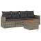 Salon de jardin 5 pcs avec coussins gris résine tresséeCet ensemble de canapés de jardin est le complément parfait de votre arrière-cour, terrasse ou patio, offrant un espace confortable et accueillant pour discuter avec la famille et les amis ou simplement se détendre et profiter de l'extérieur. Matériau durable : la résine tressée, également connue sous le nom de poly rotin, est un matériau synthétique solide et nécessitant peu d'entretien qui ressemble au rotin naturel. Il est léger, facile à nettoyer et couramment utilisé pour les meubles d'extérieur en raison de sa durabilité et de ses propriétés de résistance aux intempéries.Dessus stable et facile à nettoyer : cette table de jardin a un dessus en bois d'acacia robuste, durable et facile à nettoyer avec un chiffon humide.Housse amovible et lavable : ces coussins de siège sont dotés de housses amovibles pour un lavage et un entretien faciles.Cadre robuste et stable : le cadre en acier enduit de poudre assure la solidité et la stabilité du meuble de jardin pour une utilisation quotidienne à l'extérieur.Conception modulaire : cet ensemble de meubles d'extérieur a une conception modulaire, ce qui le rend complètement flexible et facile à déplacer, afin que vous puissiez créer un agencement de meubles d'extérieur personnalisé. Bon à savoir :Pour que vos meubles d'extérieur restent beaux, nous vous recommandons de les protéger avec une housse imperméable.