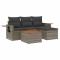 Salon de jardin 5 pcs avec coussins gris résine tresséeCet ensemble de canapés de jardin est le complément parfait de votre arrière-cour, terrasse ou patio, offrant un espace confortable et accueillant pour discuter avec la famille et les amis ou simplement se détendre et profiter de l'extérieur. Matériau durable : la résine tressée, également connue sous le nom de poly rotin, est un matériau synthétique solide et nécessitant peu d'entretien qui ressemble au rotin naturel. Il est léger, facile à nettoyer et couramment utilisé pour les meubles d'extérieur en raison de sa durabilité et de ses propriétés de résistance aux intempéries.Fonction de rangement avec sac résistant à l'eau : chaque siège de jardin dispose d'un espace de rangement sous l'assise, complété par un sac résistant à l'eau pour ranger les coussins, les jouets et d'autres objets. Les sacs intérieurs sont dotés d'un couvercle et peuvent être solidement fixés aux sièges à l'aide de bandes auto-agrippantes pour plus de stabilité.Dessus stable et facile à nettoyer : cette table de jardin a un dessus en bois d'acacia robuste, durable et facile à nettoyer avec un chiffon humide.Table d'appoint pratique : ce mobilier d'extérieur comprend des tables d'appoint pliables avec un ressort à gaz sur les accoudoirs, offrant des endroits pratiques pour garder vos essentiels à portée de main.Conception modulaire : cet ensemble de meubles d'extérieur a une conception modulaire, ce qui le rend complètement flexible et facile à déplacer, afin que vous puissiez créer un agencement de meubles d'extérieur personnalisé. Bon à savoir :Pour que vos meubles d'extérieur restent beaux, nous vous recommandons de les protéger avec une housse imperméable.