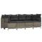 Salon de jardin 5 pcs avec coussins gris résine tresséeCet ensemble de canapés de jardin est le complément parfait de votre arrière-cour, terrasse ou patio, offrant un espace confortable et accueillant pour discuter avec la famille et les amis ou simplement se détendre et profiter de l'extérieur. Matériau durable : la résine tressée, également connue sous le nom de poly rotin, est un matériau synthétique solide et nécessitant peu d'entretien qui ressemble au rotin naturel. Il est léger, facile à nettoyer et couramment utilisé pour les meubles d'extérieur en raison de sa durabilité et de ses propriétés de résistance aux intempéries.Expérience d'assise confortable : ce mobilier d'extérieur, doté de coussins épais, offre une expérience d'assise confortable.Pouf polyvalent : le tabouret est polyvalent, servant de repose-pieds confortable lorsque vous vous prélassez sur le canapé ou de siège supplémentaire dans votre jardin.Housse amovible et lavable : ces coussins de siège sont dotés de housses amovibles pour un lavage et un entretien faciles.Cadre robuste et stable : le cadre en acier enduit de poudre assure la solidité et la stabilité du meuble de jardin pour une utilisation quotidienne à l'extérieur. Bon à savoir :Pour que vos meubles d'extérieur restent beaux, nous vous recommandons de les protéger avec une housse imperméable.