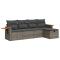 Salon de jardin 5 pcs avec coussins gris résine tresséeCet ensemble de canapés de jardin est le complément parfait de votre arrière-cour, terrasse ou patio, offrant un espace confortable et accueillant pour discuter avec la famille et les amis ou simplement se détendre et profiter de l'extérieur. Matériau durable : la résine tressée, également connue sous le nom de poly rotin, est un matériau synthétique solide et nécessitant peu d'entretien qui ressemble au rotin naturel. Elle est légère, facile à nettoyer et couramment utilisée pour les meubles d'extérieur en raison de sa durabilité et de ses propriétés de résistance aux intempéries.Fonction de rangement avec sac résistant à l'eau : le mobilier de jardin dispose d'un espace de rangement sous l'assise, complété par un sac résistant à l'eau pour ranger coussins, jouets et autres objets. Le sac intérieur peut être solidement fixé au mobilier d'extérieur grâce à des attaches auto-agrippantes pour plus de stabilité.Pouf polyvalent : le tabouret est polyvalent, servant de repose-pieds confortable lorsque vous vous prélassez sur le canapé ou de siège supplémentaire dans votre jardin.Housse amovible et lavable : ces coussins de siège sont dotés de housses amovibles pour un lavage et un entretien faciles.Conception modulaire : cet ensemble de meubles d'extérieur a une conception modulaire, ce qui le rend complètement flexible et facile à déplacer, afin que vous puissiez créer un agencement de meubles d'extérieur personnalisé. Bon à savoir :Pour que vos meubles d'extérieur restent beaux, nous vous recommandons de les protéger avec une housse imperméable.