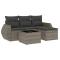 Salon de jardin 5 pcs avec coussins gris résine tresséeCet ensemble de canapés de jardin est le complément parfait de votre arrière-cour, terrasse ou patio, offrant un espace confortable et accueillant pour discuter avec la famille et les amis ou simplement se détendre et profiter de l'extérieur. Matériau durable : la résine tressée, également connue sous le nom de poly rotin, est un matériau synthétique solide et nécessitant peu d'entretien qui ressemble au rotin naturel. Il est léger, facile à nettoyer et couramment utilisé pour les meubles d'extérieur en raison de sa durabilité et de ses propriétés de résistance aux intempéries.Fonction de rangement avec sac résistant à l'eau : chaque siège de jardin dispose d'un espace de rangement sous l'assise, complété par un sac résistant à l'eau pour ranger les coussins, les jouets et d'autres objets. Les sacs intérieurs sont dotés d'un couvercle et peuvent être solidement fixés aux sièges à l'aide de bandes auto-agrippantes pour plus de stabilité.Dessus en verre : le dessus de la table d'extérieur est fabriqué en verre trempé solide et durable, ce qui le rend facile à nettoyer avec un chiffon humide et ajoute une touche d'élégance à votre espace extérieur.Housse amovible et lavable : ces coussins de siège sont dotés de housses amovibles pour un lavage et un entretien faciles.Conception modulaire : cet ensemble de meubles d'extérieur a une conception modulaire, ce qui le rend complètement flexible et facile à déplacer, afin que vous puissiez créer un agencement de meubles d'extérieur personnalisé. Bon à savoir :Pour que vos meubles d'extérieur restent beaux, nous vous recommandons de les protéger avec une housse imperméable.