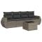 Salon de jardin 5 pcs avec coussins gris résine tresséeCet ensemble de canapés de jardin est le complément parfait de votre arrière-cour, terrasse ou patio, offrant un espace confortable et accueillant pour discuter avec la famille et les amis ou simplement se détendre et profiter de l'extérieur. Matériau durable : la résine tressée, également connue sous le nom de poly rotin, est un matériau synthétique solide et nécessitant peu d'entretien qui ressemble au rotin naturel. Il est léger, facile à nettoyer et couramment utilisé pour les meubles d'extérieur en raison de sa durabilité et de ses propriétés de résistance aux intempéries.Fonction de rangement avec sac résistant à l'eau : chaque siège de jardin dispose d'un espace de rangement sous l'assise, complété par un sac résistant à l'eau pour ranger les coussins, les jouets et d'autres objets. Les sacs intérieurs sont dotés d'un couvercle et peuvent être solidement fixés aux sièges à l'aide de bandes auto-agrippantes pour plus de stabilité.Dessus en verre : le dessus de la table d'extérieur est fabriqué en verre trempé solide et durable, ce qui le rend facile à nettoyer avec un chiffon humide et ajoute une touche d'élégance à votre espace extérieur.Housse amovible et lavable : ces coussins de siège sont dotés de housses amovibles pour un lavage et un entretien faciles.Conception modulaire : cet ensemble de meubles d'extérieur a une conception modulaire, ce qui le rend complètement flexible et facile à déplacer, afin que vous puissiez créer un agencement de meubles d'extérieur personnalisé. Bon à savoir :Pour que vos meubles d'extérieur restent beaux, nous vous recommandons de les protéger avec une housse imperméable.