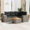 Salon de jardin 5 pcs avec coussins gris résine tresséeCet ensemble de canapés de jardin est le complément parfait de votre arrière-cour, terrasse ou patio, offrant un espace confortable et accueillant pour discuter avec la famille et les amis ou simplement se détendre et profiter de l'extérieur. Matériau durable : la résine tressée, également connue sous le nom de poly rotin, est un matériau synthétique solide et nécessitant peu d'entretien qui ressemble au rotin naturel. Il est léger, facile à nettoyer et couramment utilisé pour les meubles d'extérieur en raison de sa durabilité et de ses propriétés de résistance aux intempéries.Dessus stable et facile à nettoyer : cette table de jardin a un dessus en bois d'acacia robuste, durable et facile à nettoyer avec un chiffon humide. Fonction de rangement avec sac résistant à l'eau : chaque siège de jardin dispose d'un espace de rangement sous l'assise, complété par un sac résistant à l'eau pour ranger les coussins, les jouets et d'autres objets. Les sacs intérieurs sont dotés d'un couvercle et peuvent être solidement fixés aux sièges à l'aide de bandes auto-agrippantes pour plus de stabilité.Expérience d'assise confortable : ce mobilier d'extérieur, doté de coussins épais, offre une expérience d'assise confortable.Conception modulaire : cet ensemble de meubles d'extérieur a une conception modulaire, ce qui le rend complètement flexible et facile à déplacer, afin que vous puissiez créer un agencement de meubles d'extérieur personnalisé. Bon à savoir :Pour que vos meubles d'extérieur restent beaux, nous vous recommandons de les protéger avec une housse imperméable.