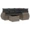 Salon de jardin 5 pcs avec coussins gris résine tresséeCet ensemble de canapés de jardin est le complément parfait de votre arrière-cour, terrasse ou patio, offrant un espace confortable et accueillant pour discuter avec la famille et les amis ou simplement se détendre et profiter de l'extérieur. Matériau durable : la résine tressée, également connue sous le nom de poly rotin, est un matériau synthétique solide et nécessitant peu d'entretien qui ressemble au rotin naturel. Il est léger, facile à nettoyer et couramment utilisé pour les meubles d'extérieur en raison de sa durabilité et de ses propriétés de résistance aux intempéries.Fonction de rangement avec sac résistant à l'eau : chaque siège de jardin dispose d'un espace de rangement sous l'assise, complété par un sac résistant à l'eau pour ranger les coussins, les jouets et d'autres objets. Les sacs intérieurs sont dotés d'un couvercle et peuvent être solidement fixés aux sièges à l'aide de bandes auto-agrippantes pour plus de stabilité.Dessus en verre : le dessus de la table d'extérieur est fabriqué en verre trempé solide et durable, ce qui le rend facile à nettoyer avec un chiffon humide et ajoute une touche d'élégance à votre espace extérieur.Housse amovible et lavable : ces coussins de siège sont dotés de housses amovibles pour un lavage et un entretien faciles.Conception modulaire : cet ensemble de meubles d'extérieur a une conception modulaire, ce qui le rend complètement flexible et facile à déplacer, afin que vous puissiez créer un agencement de meubles d'extérieur personnalisé. Bon à savoir :Pour que vos meubles d'extérieur restent beaux, nous vous recommandons de les protéger avec une housse imperméable.