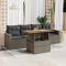 Salon de jardin 5 pcs avec coussins gris résine tresséeCet ensemble de canapés de jardin est le complément parfait de votre arrière-cour, terrasse ou patio, offrant un espace confortable et accueillant pour discuter avec la famille et les amis ou simplement se détendre et profiter de l'extérieur. Matériau durable : la résine tressée, également connue sous le nom de poly rotin, est un matériau synthétique solide et nécessitant peu d'entretien qui ressemble au rotin naturel. Elle est légère, facile à nettoyer et couramment utilisée pour les meubles d'extérieur en raison de sa durabilité et de ses propriétés de résistance aux intempéries.Fonction de rangement avec sac résistant à l'eau : le mobilier de jardin dispose d'un espace de rangement sous l'assise, complété par un sac résistant à l'eau pour ranger coussins, jouets et autres objets. Le sac intérieur peut être solidement fixé au mobilier d'extérieur grâce à des attaches auto-agrippantes pour plus de stabilité.Dessus de table réglable : le dessus de table peut être soulevé pour rendre la table plus haute, ce qui transforme la table d'extérieur d'une table basse à une table de salle à manger. Elle est parfaite pour recevoir des invités ou prendre des repas à l'extérieur.Housse amovible et lavable : ces coussins de siège sont dotés de housses amovibles pour un lavage et un entretien faciles.Conception modulaire : cet ensemble de meubles d'extérieur a une conception modulaire, ce qui le rend complètement flexible et facile à déplacer, afin que vous puissiez créer un agencement de meubles d'extérieur personnalisé. Bon à savoir :Pour que vos meubles d'extérieur restent beaux, nous vous recommandons de les protéger avec une housse imperméable.