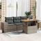 Salon de jardin 5 pcs avec coussins gris résine tresséeCet ensemble de canapés de jardin est le complément parfait de votre arrière-cour, terrasse ou patio, offrant un espace confortable et accueillant pour discuter avec la famille et les amis ou simplement se détendre et profiter de l'extérieur. Matériau durable : la résine tressée, également connue sous le nom de poly rotin, est un matériau synthétique solide et nécessitant peu d'entretien qui ressemble au rotin naturel. Elle est légère, facile à nettoyer et couramment utilisée pour les meubles d'extérieur en raison de sa durabilité et de ses propriétés de résistance aux intempéries.Fonction de rangement avec sac résistant à l'eau : le mobilier de jardin dispose d'un espace de rangement sous l'assise, complété par un sac résistant à l'eau pour ranger coussins, jouets et autres objets. Le sac intérieur peut être solidement fixé au mobilier d'extérieur grâce à des attaches auto-agrippantes pour plus de stabilité.Dessus de table réglable : le dessus de table peut être soulevé pour rendre la table plus haute, ce qui transforme la table d'extérieur d'une table basse à une table de salle à manger. Elle est parfaite pour recevoir des invités ou prendre des repas à l'extérieur.Housse amovible et lavable : ces coussins de siège sont dotés de housses amovibles pour un lavage et un entretien faciles.Conception modulaire : cet ensemble de meubles d'extérieur a une conception modulaire, ce qui le rend complètement flexible et facile à déplacer, afin que vous puissiez créer un agencement de meubles d'extérieur personnalisé. Bon à savoir :Pour que vos meubles d'extérieur restent beaux, nous vous recommandons de les protéger avec une housse imperméable.