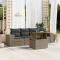 Salon de jardin 5 pcs avec coussins gris résine tresséeCet ensemble de canapés de jardin est le complément parfait de votre arrière-cour, terrasse ou patio, offrant un espace confortable et accueillant pour discuter avec la famille et les amis ou simplement se détendre et profiter de l'extérieur. Matériau durable : la résine tressée, également connue sous le nom de poly rotin, est un matériau synthétique solide et nécessitant peu d'entretien qui ressemble au rotin naturel. Il est léger, facile à nettoyer et couramment utilisé pour les meubles d'extérieur en raison de sa durabilité et de ses propriétés de résistance aux intempéries.Dessus de table réglable : le dessus de table peut être soulevé pour rendre la table plus haute, ce qui transforme la table d'extérieur d'une table basse à une table de salle à manger. Elle est parfaite pour recevoir des invités ou prendre des repas à l'extérieur.Expérience d'assise confortable : ce mobilier d'extérieur, doté de coussins épais, offre une expérience d'assise confortable.Housse amovible et lavable : ces coussins de siège sont dotés de housses amovibles pour un lavage et un entretien faciles.Conception modulaire : cet ensemble de meubles d'extérieur a une conception modulaire, ce qui le rend complètement flexible et facile à déplacer, afin que vous puissiez créer un agencement de meubles d'extérieur personnalisé. Bon à savoir :Pour que vos meubles d'extérieur restent beaux, nous vous recommandons de les protéger avec une housse imperméable.