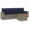 Salon de jardin 5 pcs avec coussins gris résine tresséeCet ensemble de canapés de jardin est le complément parfait de votre arrière-cour, terrasse ou patio, offrant un espace confortable et accueillant pour discuter avec la famille et les amis ou simplement se détendre et profiter de l'extérieur. Matériau durable : la résine tressée, également connue sous le nom de poly rotin, est un matériau synthétique solide et nécessitant peu d'entretien qui ressemble au rotin naturel. Il est léger, facile à nettoyer et couramment utilisé pour les meubles d'extérieur en raison de sa durabilité et de ses propriétés de résistance aux intempéries. Fonction de rangement avec sac résistant à l'eau : chaque siège de jardin dispose d'un espace de rangement sous l'assise, complété par un sac résistant à l'eau pour ranger les coussins, les jouets et d'autres objets. Les sacs intérieurs sont dotés d'un couvercle et peuvent être solidement fixés aux sièges à l'aide de bandes auto-agrippantes pour plus de stabilité. Dessus stable et facile à nettoyer : cette table de jardin a un dessus en bois d'acacia robuste, durable et facile à nettoyer avec un chiffon humide. Housse amovible et lavable : ces coussins de siège sont dotés de housses amovibles pour un lavage et un entretien faciles. Conception modulaire : cet ensemble de meubles d'extérieur a une conception modulaire, ce qui le rend complètement flexible et facile à déplacer, afin que vous puissiez créer un agencement de meubles d'extérieur personnalisé. Bon à savoir : Pour que vos meubles d'extérieur restent beaux, nous vous recommandons de les protéger avec une housse imperméable.