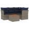 Salon de jardin 5 pcs avec coussins gris résine tresséeCet ensemble de canapés de jardin est le complément parfait de votre arrière-cour, terrasse ou patio, offrant un espace confortable et accueillant pour discuter avec la famille et les amis ou simplement se détendre et profiter de l'extérieur. Matériau durable : la résine tressée, également connue sous le nom de poly rotin, est un matériau synthétique solide et nécessitant peu d'entretien qui ressemble au rotin naturel. Il est léger, facile à nettoyer et couramment utilisé pour les meubles d'extérieur en raison de sa durabilité et de ses propriétés de résistance aux intempéries. Fonction de rangement avec sac résistant à l'eau : chaque siège de jardin dispose d'un espace de rangement sous l'assise, complété par un sac résistant à l'eau pour ranger les coussins, les jouets et d'autres objets. Les sacs intérieurs sont dotés d'un couvercle et peuvent être solidement fixés aux sièges à l'aide de bandes auto-agrippantes pour plus de stabilité. Dessus stable et facile à nettoyer : cette table de jardin a un dessus en bois d'acacia robuste, durable et facile à nettoyer avec un chiffon humide. Housse amovible et lavable : ces coussins de siège sont dotés de housses amovibles pour un lavage et un entretien faciles. Conception modulaire : cet ensemble de meubles d'extérieur a une conception modulaire, ce qui le rend complètement flexible et facile à déplacer, afin que vous puissiez créer un agencement de meubles d'extérieur personnalisé. Bon à savoir : Pour que vos meubles d'extérieur restent beaux, nous vous recommandons de les protéger avec une housse imperméable.