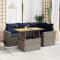 Salon de jardin 5 pcs avec coussins gris résine tresséeCet ensemble de canapés de jardin est le complément parfait de votre arrière-cour, terrasse ou patio, offrant un espace confortable et accueillant pour discuter avec la famille et les amis ou simplement se détendre et profiter de l'extérieur. Matériau durable : la résine tressée, également connue sous le nom de poly rotin, est un matériau synthétique solide et nécessitant peu d'entretien qui ressemble au rotin naturel. Elle est légère, facile à nettoyer et couramment utilisée pour les meubles d'extérieur en raison de sa durabilité et de ses propriétés de résistance aux intempéries. Fonction de rangement avec sac résistant à l'eau : chaque siège de jardin dispose d'un espace de rangement sous l'assise, complété par un sac résistant à l'eau pour ranger les coussins, les jouets et d'autres objets. Le sac intérieur est doté d'un couvercle et peut être solidement fixé au siège à l'aide de bandes auto-agrippantes pour plus de stabilité. Dessus de table réglable : le dessus de table peut être soulevé pour rendre la table plus haute, ce qui transforme la table d'extérieur d'une table basse à une table de salle à manger. Elle est parfaite pour recevoir des invités ou prendre des repas à l'extérieur. Housse amovible et lavable : ces coussins de siège sont dotés de housses amovibles pour un lavage et un entretien faciles. Cadre robuste et stable : le cadre en acier enduit de poudre est solide, stable, durable et résistant à la corrosion et aux intempéries, ce qui garantit des performances durables. Bon à savoir : Pour que vos meubles d'extérieur restent beaux, nous vous recommandons de les protéger avec une housse imperméable.