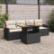 Salon de jardin 5 pcs avec coussins noir résine tressée acaciaCet ensemble de canapés de jardin est le complément parfait de votre arrière-cour, terrasse ou patio, offrant un espace confortable et accueillant pour discuter avec la famille et les amis ou simplement se détendre et profiter de l'extérieur.Matériau durable : la résine tressée, également connue sous le nom de poly rotin, est un matériau synthétique solide et nécessitant peu d'entretien qui ressemble au rotin naturel. Elle est légère, facile à nettoyer et couramment utilisée pour les meubles d'extérieur en raison de sa durabilité et de ses propriétés de résistance aux intempéries.Fonction de rangement avec sac résistant à l'eau : chaque siège de jardin dispose d'un espace de rangement sous l'assise, complété par un sac résistant à l'eau pour ranger les coussins, les jouets et d'autres objets. Les sacs intérieurs sont dotés d'un couvercle et peuvent être solidement fixés aux sièges à l'aide de bandes auto-agrippantes pour plus de stabilité.Housse amovible et lavable : ces coussins de siège sont dotés de housses amovibles pour un lavage et un entretien faciles.Conception modulaire : cet ensemble de meubles d'extérieur a une conception modulaire, ce qui le rend complètement flexible et facile à déplacer, afin que vous puissiez créer un agencement de meubles d'extérieur personnalisé.Bon à savoir :Pour que vos meubles d'extérieur restent beaux, nous vous recommandons de les protéger avec une housse imperméable.
