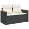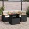 Salon de jardin 5 pcs avec coussins noir résine tressée acaciaCet ensemble de canapés de jardin est le complément parfait de votre arrière-cour, terrasse ou patio, offrant un espace confortable et accueillant pour discuter avec la famille et les amis ou simplement se détendre et profiter de l'extérieur.Matériau durable : la résine tressée, également connue sous le nom de poly rotin, est un matériau synthétique solide et nécessitant peu d'entretien qui ressemble au rotin naturel. Elle est légère, facile à nettoyer et couramment utilisée pour les meubles d'extérieur en raison de sa durabilité et de ses propriétés de résistance aux intempéries.Fonction de rangement avec sac résistant à l'eau : chaque siège de jardin dispose d'un espace de rangement sous l'assise, complété par un sac résistant à l'eau pour ranger les coussins, les jouets et d'autres objets. Les sacs intérieurs sont dotés d'un couvercle et peuvent être solidement fixés aux sièges à l'aide de bandes auto-agrippantes pour plus de stabilité.Housse amovible et lavable : ces coussins de siège sont dotés de housses amovibles pour un lavage et un entretien faciles.Conception modulaire : cet ensemble de meubles d'extérieur a une conception modulaire, ce qui le rend complètement flexible et facile à déplacer, afin que vous puissiez créer un agencement de meubles d'extérieur personnalisé.Bon à savoir :Pour que vos meubles d'extérieur restent beaux, nous vous recommandons de les protéger avec une housse imperméable.
