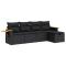 Salon de jardin 5 pcs avec coussins noir résine tresséeCet ensemble de canapés de jardin est le complément parfait de votre arrière-cour, terrasse ou patio, offrant un espace confortable et accueillant pour discuter avec la famille et les amis ou simplement se détendre et profiter de l'extérieur. Matériau durable : la résine tressée, également connue sous le nom de poly rotin, est un matériau synthétique solide et nécessitant peu d'entretien qui ressemble au rotin naturel. Elle est légère, facile à nettoyer et couramment utilisée pour les meubles d'extérieur en raison de sa durabilité et de ses propriétés de résistance aux intempéries.Fonction de rangement avec sac résistant à l'eau : le mobilier de jardin dispose d'un espace de rangement sous l'assise, complété par un sac résistant à l'eau pour ranger coussins, jouets et autres objets. Le sac intérieur peut être solidement fixé au mobilier d'extérieur grâce à des attaches auto-agrippantes pour plus de stabilité.Pouf polyvalent : le tabouret est polyvalent, servant de repose-pieds confortable lorsque vous vous prélassez sur le canapé ou de siège supplémentaire dans votre jardin.Housse amovible et lavable : ces coussins de siège sont dotés de housses amovibles pour un lavage et un entretien faciles.Conception modulaire : cet ensemble de meubles d'extérieur a une conception modulaire, ce qui le rend complètement flexible et facile à déplacer, afin que vous puissiez créer un agencement de meubles d'extérieur personnalisé. Bon à savoir :Pour que vos meubles d'extérieur restent beaux, nous vous recommandons de les protéger avec une housse imperméable.