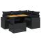 Salon de jardin 5 pcs avec coussins noir résine tresséeCet ensemble de canapés de jardin est le complément parfait de votre arrière-cour, terrasse ou patio, offrant un espace confortable et accueillant pour discuter avec la famille et les amis ou simplement se détendre et profiter de l'extérieur. Matériau durable : la résine tressée, également connue sous le nom de poly rotin, est un matériau synthétique solide et nécessitant peu d'entretien qui ressemble au rotin naturel. Il est léger, facile à nettoyer et couramment utilisé pour les meubles d'extérieur en raison de sa durabilité et de ses propriétés de résistance aux intempéries.Dessus de table réglable : le dessus de table peut être soulevé pour rendre la table plus haute, ce qui transforme la table d'extérieur d'une table basse à une table de salle à manger. Elle est parfaite pour recevoir des invités ou prendre des repas à l'extérieur.Expérience d'assise confortable : ce mobilier d'extérieur, doté de coussins épais, offre une expérience d'assise confortable.Housse amovible et lavable : ces coussins de siège sont dotés de housses amovibles pour un lavage et un entretien faciles.Conception modulaire : cet ensemble de meubles d'extérieur a une conception modulaire, ce qui le rend complètement flexible et facile à déplacer, afin que vous puissiez créer un agencement de meubles d'extérieur personnalisé. Bon à savoir :Pour que vos meubles d'extérieur restent beaux, nous vous recommandons de les protéger avec une housse imperméable.