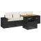 Salon de jardin 5 pcs avec coussins noir résine tresséeCet ensemble de canapés de jardin est le complément parfait de votre arrière-cour, terrasse ou patio, offrant un espace confortable et accueillant pour discuter avec la famille et les amis ou simplement se détendre et profiter de l'extérieur. Matériau durable : la résine tressée, également connue sous le nom de poly rotin, est un matériau synthétique solide et nécessitant peu d'entretien qui ressemble au rotin naturel. Elle est légère, facile à nettoyer et couramment utilisée pour les meubles d'extérieur en raison de sa durabilité et de ses propriétés de résistance aux intempéries.Fonction de rangement avec sac résistant à l'eau : le mobilier de jardin dispose d'un espace de rangement sous l'assise, complété par un sac résistant à l'eau pour ranger coussins, jouets et autres objets. Le sac intérieur peut être solidement fixé au mobilier d'extérieur grâce à des attaches auto-agrippantes pour plus de stabilité.Dessus de table réglable : le dessus de table peut être soulevé pour rendre la table plus haute, ce qui transforme la table d'extérieur d'une table basse à une table de salle à manger. Elle est parfaite pour recevoir des invités ou prendre des repas à l'extérieur.Housse amovible et lavable : ces coussins de siège sont dotés de housses amovibles pour un lavage et un entretien faciles.Conception modulaire : cet ensemble de meubles d'extérieur a une conception modulaire, ce qui le rend complètement flexible et facile à déplacer, afin que vous puissiez créer un agencement de meubles d'extérieur personnalisé. Bon à savoir :Pour que vos meubles d'extérieur restent beaux, nous vous recommandons de les protéger avec une housse imperméable.