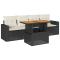 Salon de jardin 5 pcs avec coussins noir résine tresséeCet ensemble de canapés de jardin est le complément parfait de votre arrière-cour, terrasse ou patio, offrant un espace confortable et accueillant pour discuter avec la famille et les amis ou simplement se détendre et profiter de l'extérieur. Matériau durable : la résine tressée, également connue sous le nom de poly rotin, est un matériau synthétique solide et nécessitant peu d'entretien qui ressemble au rotin naturel. Elle est légère, facile à nettoyer et couramment utilisée pour les meubles d'extérieur en raison de sa durabilité et de ses propriétés de résistance aux intempéries.Fonction de rangement avec sac résistant à l'eau : le mobilier de jardin dispose d'un espace de rangement sous l'assise, complété par un sac résistant à l'eau pour ranger coussins, jouets et autres objets. Le sac intérieur peut être solidement fixé au mobilier d'extérieur grâce à des attaches auto-agrippantes pour plus de stabilité.Dessus de table réglable : le dessus de table peut être soulevé pour rendre la table plus haute, ce qui transforme la table d'extérieur d'une table basse à une table de salle à manger. Elle est parfaite pour recevoir des invités ou prendre des repas à l'extérieur.Housse amovible et lavable : ces coussins de siège sont dotés de housses amovibles pour un lavage et un entretien faciles.Conception modulaire : cet ensemble de meubles d'extérieur a une conception modulaire, ce qui le rend complètement flexible et facile à déplacer, afin que vous puissiez créer un agencement de meubles d'extérieur personnalisé. Bon à savoir :Pour que vos meubles d'extérieur restent beaux, nous vous recommandons de les protéger avec une housse imperméable.
