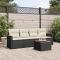 Salon de jardin 5 pcs avec coussins noir résine tresséeCet ensemble de canapés de jardin est le complément parfait de votre arrière-cour, terrasse ou patio, offrant un espace confortable et accueillant pour discuter avec la famille et les amis ou simplement se détendre et profiter de l'extérieur. Matériau durable : la résine tressée, également connue sous le nom de poly rotin, est un matériau synthétique solide et nécessitant peu d'entretien qui ressemble au rotin naturel. Il est léger, facile à nettoyer et couramment utilisé pour les meubles d'extérieur en raison de sa durabilité et de ses propriétés de résistance aux intempéries.Dessus stable et facile à nettoyer : cette table de jardin a un dessus en bois d'acacia robuste, durable et facile à nettoyer avec un chiffon humide.Housse amovible et lavable : ces coussins de siège sont dotés de housses amovibles pour un lavage et un entretien faciles.Cadre robuste et stable : le cadre en acier enduit de poudre assure la solidité et la stabilité du meuble de jardin pour une utilisation quotidienne à l'extérieur.Conception modulaire : cet ensemble de meubles d'extérieur a une conception modulaire, ce qui le rend complètement flexible et facile à déplacer, afin que vous puissiez créer un agencement de meubles d'extérieur personnalisé. Bon à savoir :Pour que vos meubles d'extérieur restent beaux, nous vous recommandons de les protéger avec une housse imperméable.