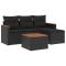 Salon de jardin 5 pcs avec coussins noir résine tresséeCet ensemble de canapés de jardin est le complément parfait de votre arrière-cour, terrasse ou patio, offrant un espace confortable et accueillant pour discuter avec la famille et les amis ou simplement se détendre et profiter de l'extérieur. Matériau durable : la résine tressée, également connue sous le nom de poly rotin, est un matériau synthétique solide et nécessitant peu d'entretien qui ressemble au rotin naturel. Il est léger, facile à nettoyer et couramment utilisé pour les meubles d'extérieur en raison de sa durabilité et de ses propriétés de résistance aux intempéries.Dessus stable et facile à nettoyer : cette table de jardin a un dessus en bois d'acacia robuste, durable et facile à nettoyer avec un chiffon humide.Housse amovible et lavable : ces coussins de siège sont dotés de housses amovibles pour un lavage et un entretien faciles.Cadre robuste et stable : le cadre en acier enduit de poudre assure la solidité et la stabilité du meuble de jardin pour une utilisation quotidienne à l'extérieur.Conception modulaire : cet ensemble de meubles d'extérieur a une conception modulaire, ce qui le rend complètement flexible et facile à déplacer, afin que vous puissiez créer un agencement de meubles d'extérieur personnalisé. Bon à savoir :Pour que vos meubles d'extérieur restent beaux, nous vous recommandons de les protéger avec une housse imperméable.