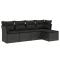 Salon de jardin 5 pcs avec coussins noir résine tresséeCet ensemble de canapés de jardin est le complément parfait de votre arrière-cour, terrasse ou patio, offrant un espace confortable et accueillant pour discuter avec la famille et les amis ou simplement se détendre et profiter de l'extérieur. Matériau durable : la résine tressée, également connue sous le nom de poly rotin, est un matériau synthétique solide et nécessitant peu d'entretien qui ressemble au rotin naturel. Il est léger, facile à nettoyer et couramment utilisé pour les meubles d'extérieur en raison de sa durabilité et de ses propriétés de résistance aux intempéries.Expérience d'assise confortable : ce mobilier d'extérieur, doté de coussins épais, offre une expérience d'assise confortable.Housse amovible et lavable : ces coussins de siège sont dotés de housses amovibles pour un lavage et un entretien faciles.Cadre robuste et stable : le cadre en acier enduit de poudre assure la solidité et la stabilité du meuble de jardin pour une utilisation quotidienne à l'extérieur.Conception modulaire : cet ensemble de meubles d'extérieur a une conception modulaire, ce qui le rend complètement flexible et facile à déplacer, afin que vous puissiez créer un agencement de meubles d'extérieur personnalisé. Bon à savoir :Pour que vos meubles d'extérieur restent beaux, nous vous recommandons de les protéger avec une housse imperméable.