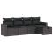 Salon de jardin 5 pcs avec coussins noir résine tresséeCet ensemble de canapés de jardin est le complément parfait de votre arrière-cour, terrasse ou patio, offrant un espace confortable et accueillant pour discuter avec la famille et les amis ou simplement se détendre et profiter de l'extérieur. Matériau durable : la résine tressée, également connue sous le nom de poly rotin, est un matériau synthétique solide et nécessitant peu d'entretien qui ressemble au rotin naturel. Il est léger, facile à nettoyer et couramment utilisé pour les meubles d'extérieur en raison de sa durabilité et de ses propriétés de résistance aux intempéries.Expérience d'assise confortable : ce mobilier d'extérieur, doté de coussins épais, offre une expérience d'assise confortable.Housse amovible et lavable : ces coussins de siège sont dotés de housses amovibles pour un lavage et un entretien faciles.Cadre robuste et stable : le cadre en acier enduit de poudre assure la solidité et la stabilité du meuble de jardin pour une utilisation quotidienne à l'extérieur.Conception modulaire : cet ensemble de meubles d'extérieur a une conception modulaire, ce qui le rend complètement flexible et facile à déplacer, afin que vous puissiez créer un agencement de meubles d'extérieur personnalisé. Bon à savoir :Pour que vos meubles d'extérieur restent beaux, nous vous recommandons de les protéger avec une housse imperméable.