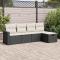 Salon de jardin 5 pcs avec coussins noir résine tresséeCet ensemble de canapés de jardin est le complément parfait de votre arrière-cour, terrasse ou patio, offrant un espace confortable et accueillant pour discuter avec la famille et les amis ou simplement se détendre et profiter de l'extérieur. Matériau durable : la résine tressée, également connue sous le nom de poly rotin, est un matériau synthétique solide et nécessitant peu d'entretien qui ressemble au rotin naturel. Elle est légère, facile à nettoyer et couramment utilisée pour les meubles d'extérieur en raison de sa durabilité et de ses propriétés de résistance aux intempéries.Fonction de rangement avec sac résistant à l'eau : le mobilier de jardin dispose d'un espace de rangement sous l'assise, complété par un sac résistant à l'eau pour ranger coussins, jouets et autres objets. Le sac intérieur peut être solidement fixé au mobilier d'extérieur grâce à des attaches auto-agrippantes pour plus de stabilité.Pouf polyvalent : le tabouret est polyvalent, servant de repose-pieds confortable lorsque vous vous prélassez sur le canapé ou de siège supplémentaire dans votre jardin.Housse amovible et lavable : ces coussins de siège sont dotés de housses amovibles pour un lavage et un entretien faciles.Conception modulaire : cet ensemble de meubles d'extérieur a une conception modulaire, ce qui le rend complètement flexible et facile à déplacer, afin que vous puissiez créer un agencement de meubles d'extérieur personnalisé. Bon à savoir :Pour que vos meubles d'extérieur restent beaux, nous vous recommandons de les protéger avec une housse imperméable.