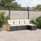 Salon de jardin 5 pcs avec coussins noir résine tresséeCet ensemble de canapés de jardin est le complément parfait de votre arrière-cour, terrasse ou patio, offrant un espace confortable et accueillant pour discuter avec la famille et les amis ou simplement se détendre et profiter de l'extérieur. Matériau durable : la résine tressée, également connue sous le nom de poly rotin, est un matériau synthétique solide et nécessitant peu d'entretien qui ressemble au rotin naturel. Il est léger, facile à nettoyer et couramment utilisé pour les meubles d'extérieur en raison de sa durabilité et de ses propriétés de résistance aux intempéries.Expérience d'assise confortable : ce mobilier d'extérieur, doté de coussins épais, offre une expérience d'assise confortable.Housse amovible et lavable : ces coussins de siège sont dotés de housses amovibles pour un lavage et un entretien faciles.Cadre robuste et stable : le cadre en acier enduit de poudre assure la solidité et la stabilité du meuble de jardin pour une utilisation quotidienne à l'extérieur.Conception modulaire : cet ensemble de meubles d'extérieur a une conception modulaire, ce qui le rend complètement flexible et facile à déplacer, afin que vous puissiez créer un agencement de meubles d'extérieur personnalisé. Bon à savoir :Pour que vos meubles d'extérieur restent beaux, nous vous recommandons de les protéger avec une housse imperméable.