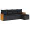 Salon de jardin 5 pcs avec coussins noir résine tresséeCet ensemble de canapés de jardin est le complément parfait de votre arrière-cour, terrasse ou patio, offrant un espace confortable et accueillant pour discuter avec la famille et les amis ou simplement se détendre et profiter de l'extérieur. Matériau durable : la résine tressée, également connue sous le nom de poly rotin, est un matériau synthétique solide et nécessitant peu d'entretien qui ressemble au rotin naturel. Elle est légère, facile à nettoyer et couramment utilisée pour les meubles d'extérieur en raison de sa durabilité et de ses propriétés de résistance aux intempéries.Fonction de rangement avec sac résistant à l'eau : chaque siège de jardin dispose d'un espace de rangement sous l'assise, complété par un sac résistant à l'eau pour ranger les coussins, les jouets et d'autres objets. Le sac intérieur est doté d'un couvercle et peut être solidement fixé au siège à l'aide de bandes auto-agrippantes pour plus de stabilité.Pouf polyvalent : le tabouret est polyvalent, servant de repose-pieds confortable lorsque vous vous prélassez sur le canapé ou de siège supplémentaire dans votre jardin.Housse amovible et lavable : ces coussins de siège sont dotés de housses amovibles pour un lavage et un entretien faciles.Cadre robuste et stable : le cadre en acier enduit de poudre est solide, stable, durable et résistant à la corrosion et aux intempéries, ce qui garantit des performances durables. Bon à savoir :Pour que vos meubles d'extérieur restent beaux, nous vous recommandons de les protéger avec une housse imperméable.