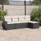 Salon de jardin 5 pcs avec coussins noir résine tresséeCet ensemble de canapés de jardin est le complément parfait de votre arrière-cour, terrasse ou patio, offrant un espace confortable et accueillant pour discuter avec la famille et les amis ou simplement se détendre et profiter de l'extérieur. Matériau durable : la résine tressée, également connue sous le nom de poly rotin, est un matériau synthétique solide et nécessitant peu d'entretien qui ressemble au rotin naturel. Elle est légère, facile à nettoyer et couramment utilisée pour les meubles d'extérieur en raison de sa durabilité et de ses propriétés de résistance aux intempéries.Fonction de rangement avec sac résistant à l'eau : le mobilier de jardin dispose d'un espace de rangement sous l'assise, complété par un sac résistant à l'eau pour ranger coussins, jouets et autres objets. Le sac intérieur peut être solidement fixé au mobilier d'extérieur grâce à des attaches auto-agrippantes pour plus de stabilité.Pouf polyvalent : le tabouret est polyvalent, servant de repose-pieds confortable lorsque vous vous prélassez sur le canapé ou de siège supplémentaire dans votre jardin.Housse amovible et lavable : ces coussins de siège sont dotés de housses amovibles pour un lavage et un entretien faciles.Conception modulaire : cet ensemble de meubles d'extérieur a une conception modulaire, ce qui le rend complètement flexible et facile à déplacer, afin que vous puissiez créer un agencement de meubles d'extérieur personnalisé. Bon à savoir :Pour que vos meubles d'extérieur restent beaux, nous vous recommandons de les protéger avec une housse imperméable.