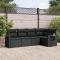 Salon de jardin 5 pcs avec coussins noir résine tresséeCet ensemble de canapés de jardin est le complément parfait de votre arrière-cour, terrasse ou patio, offrant un espace confortable et accueillant pour discuter avec la famille et les amis ou simplement se détendre et profiter de l'extérieur. Matériau durable : la résine tressée, également connue sous le nom de poly rotin, est un matériau synthétique solide et nécessitant peu d'entretien qui ressemble au rotin naturel. Il est léger, facile à nettoyer et couramment utilisé pour les meubles d'extérieur en raison de sa durabilité et de ses propriétés de résistance aux intempéries.Fonction de rangement avec sac résistant à l'eau : le mobilier de jardin dispose d'un espace de rangement sous l'assise, complété par un sac résistant à l'eau pour ranger coussins, jouets et autres objets. Le sac intérieur peut être solidement fixé au mobilier d'extérieur grâce à des attaches auto-agrippantes pour plus de stabilité.Table d'appoint pratique : ce mobilier d'extérieur comprend une table d'appoint pliable avec un ressort à gaz sur les accoudoirs, offrant un endroit pratique pour garder vos essentiels à portée de main.Housse amovible et lavable : ces coussins de siège sont dotés de housses amovibles pour un lavage et un entretien faciles.Conception modulaire : cet ensemble de meubles d'extérieur a une conception modulaire, ce qui le rend complètement flexible et facile à déplacer, afin que vous puissiez créer un agencement de meubles d'extérieur personnalisé. Bon à savoir :Pour que vos meubles d'extérieur restent beaux, nous vous recommandons de les protéger avec une housse imperméable.