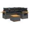 Salon de jardin 5 pcs avec coussins noir résine tresséeCet ensemble de canapés de jardin est le complément parfait de votre arrière-cour, terrasse ou patio, offrant un espace confortable et accueillant pour discuter avec la famille et les amis ou simplement se détendre et profiter de l'extérieur. Matériau durable : la résine tressée, également connue sous le nom de poly rotin, est un matériau synthétique solide et nécessitant peu d'entretien qui ressemble au rotin naturel. Il est léger, facile à nettoyer et couramment utilisé pour les meubles d'extérieur en raison de sa durabilité et de ses propriétés de résistance aux intempéries.Dessus stable et facile à nettoyer : cette table de jardin a un dessus en bois d'acacia robuste, durable et facile à nettoyer avec un chiffon humide.Table d'appoint pratique : ce mobilier d'extérieur comprend une table d'appoint pliable avec un ressort à gaz sur les accoudoirs, offrant un endroit pratique pour garder vos essentiels à portée de main.Housse amovible et lavable : ces coussins de siège sont dotés de housses amovibles pour un lavage et un entretien faciles.Conception modulaire : cet ensemble de meubles d'extérieur a une conception modulaire, ce qui le rend complètement flexible et facile à déplacer, afin que vous puissiez créer un agencement de meubles d'extérieur personnalisé. Bon à savoir :Pour que vos meubles d'extérieur restent beaux, nous vous recommandons de les protéger avec une housse imperméable.